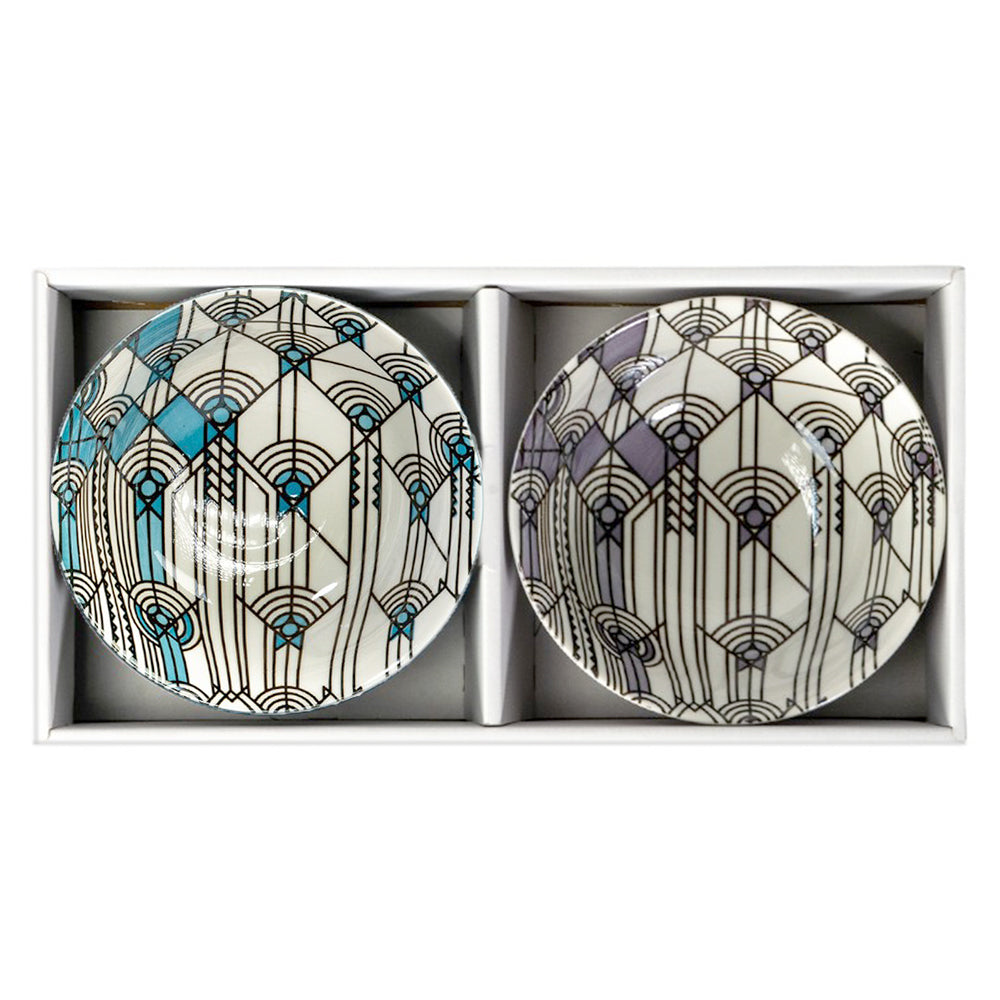 The design of the Frank Lloyd Wright April Showers Ceramic Bowls is adapted from his "April Showers" cover design submitted to Liberty Magazine. However it was considered too avant-garde and rejected. In this design, Wright's masterful use of the tools of his trade: a t-square, triangle, compass, colored pencils, created an enduring design that captures the essence of spring. These Frank Lloyd Wright bowls are officially licensed by the Frank Lloyd Wright Foundation. Dimensions: 6”D X 2.75"H. Microwave and dishwasher safe. Made in Japan.