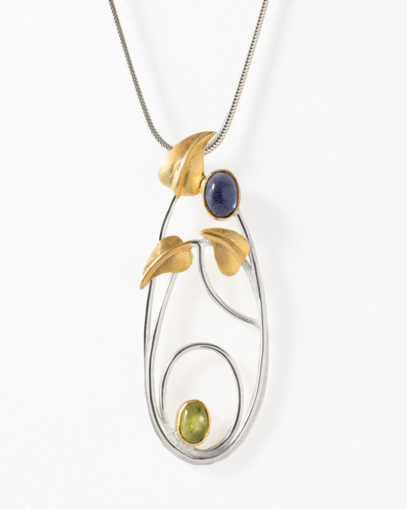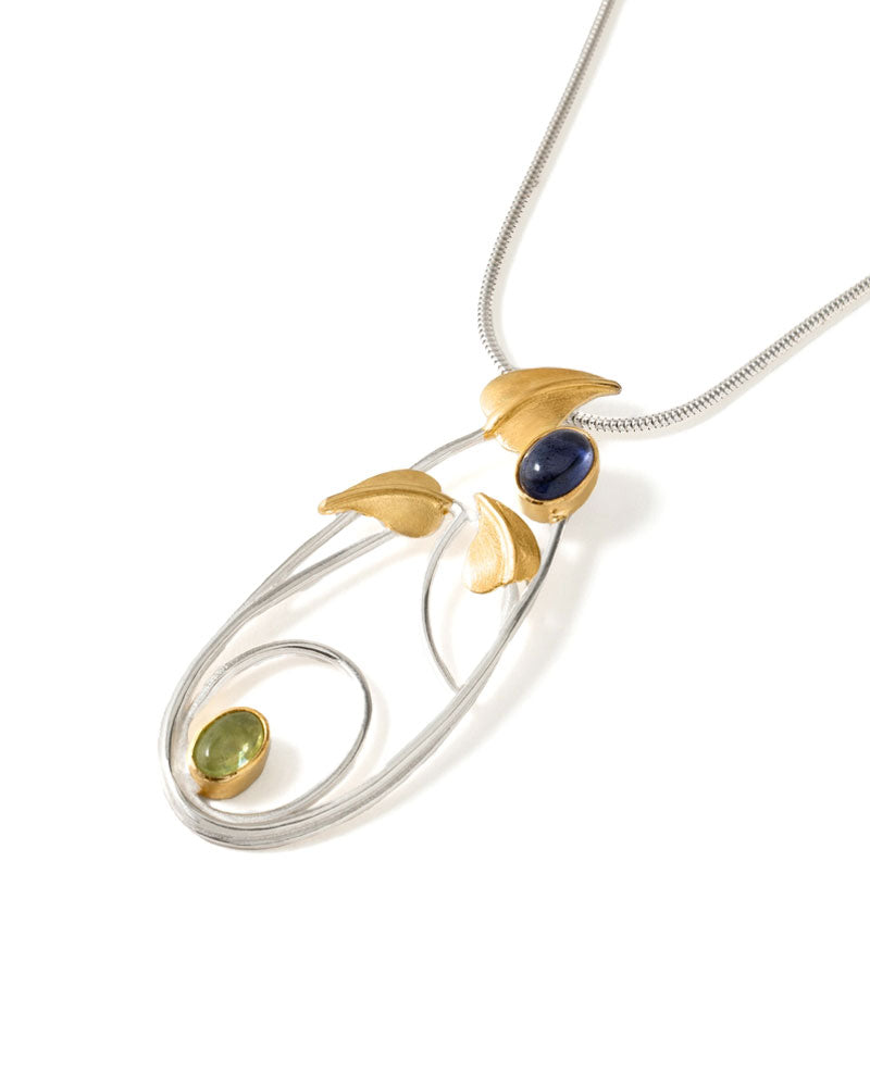 The Charles Rennie Mackintosh Tulip and Lattice Pendant Necklace in Blue is crafted in rhodium plate with fine vitreous glass enamel. Inspired by the famous designer Charles Rennie Mackintosh (1868-1928). Hypoallergenic nickel free. Pendant Length: 1.3" (32mm). Comes complete with 16” chain with 2” extender. Matching Earrings are also available. Gift boxed.